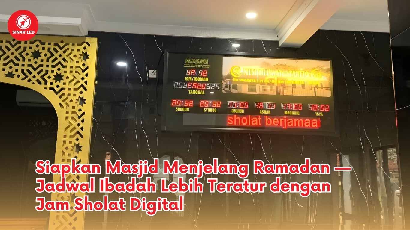Siapkan masjid Anda menyambut Ramadan mulai dari sekarang! Tingkatkan ketertiban jadwal ibadah dengan jam sholat digital berkualitas, akurat, dan mudah dioperasikan. Hubungi WhatsApp Sinar Led Depok untuk konsultasi atau pemesanan kami siap membantu menyesuaikan model dan ukuran jam digital sesuai kebutuhan Anda.
